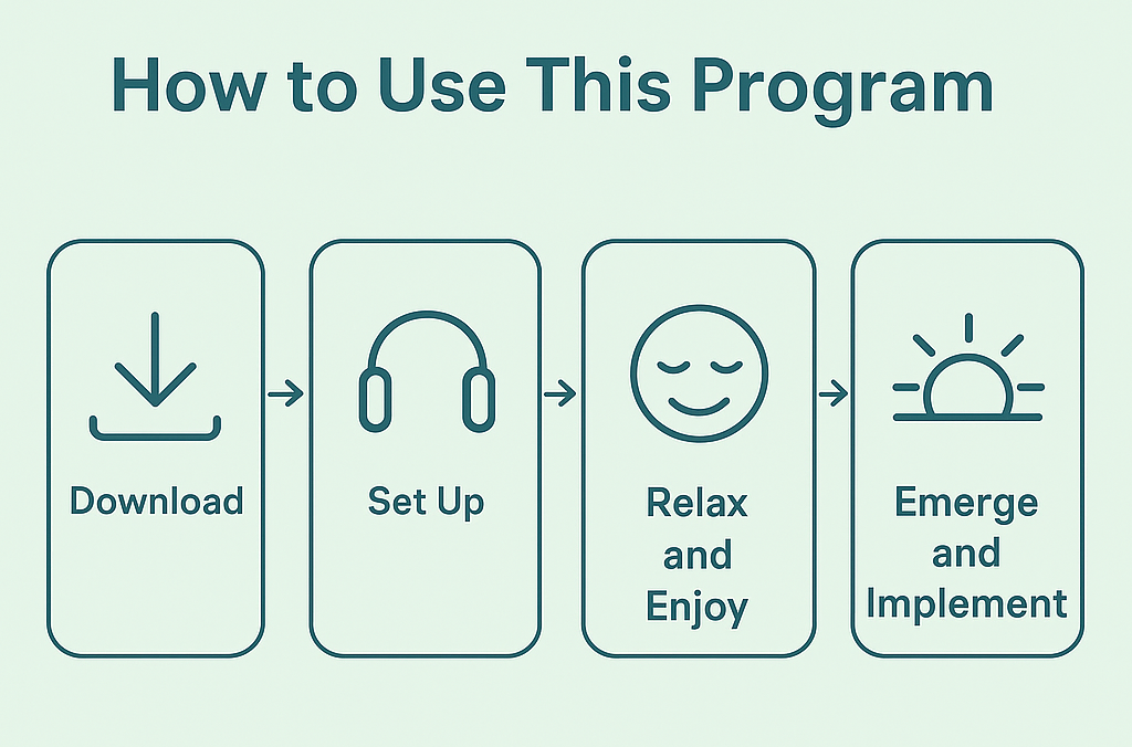Hypnosis is progressive, and the more often you do it, the faster, smoother, and deeper it becomes. By conditioning yourself with the training sessions, you’ll find the therapeutic effects of the main recording will be many times more successful.